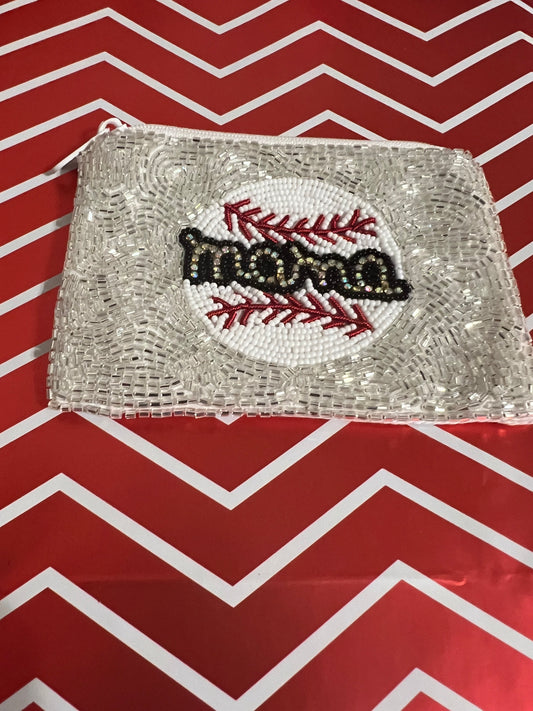 Sparkle Beaded Baseball Mama Zipper Pouch
