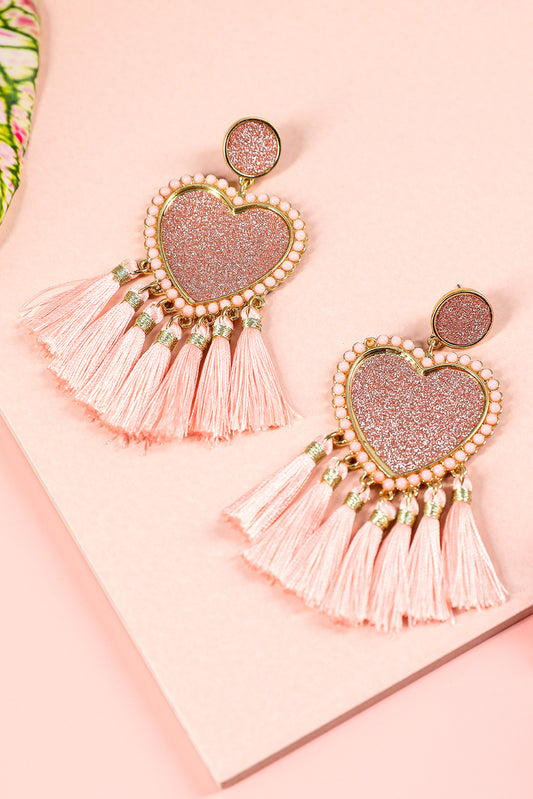 Racing Red Glitter Heart Tassel Valentines Earrings