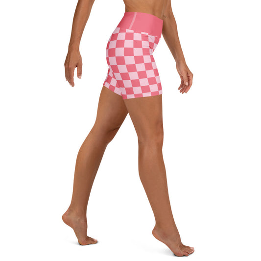 Pink Checkerboard Yoga Shorts