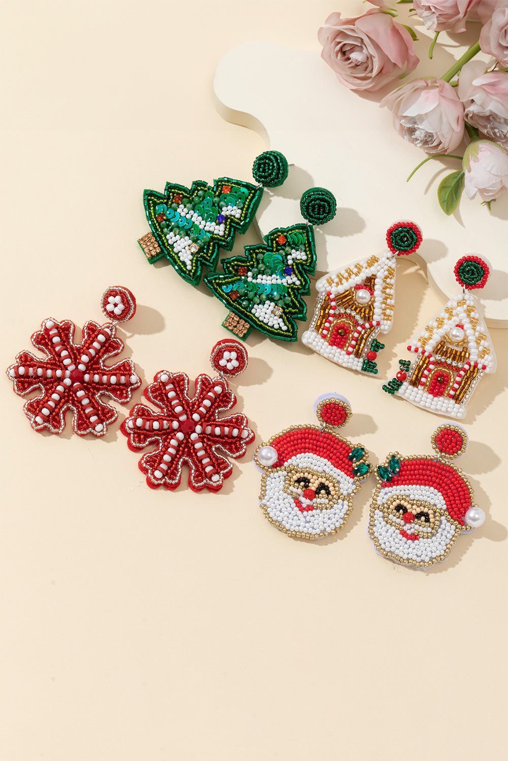 Gold Santa Claus Graphic Rice Beaded Drop Earrings